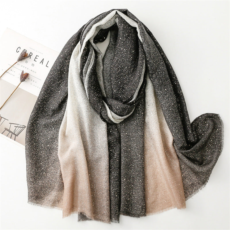 Cotton And Linen Hand Scarf Gilding Back-shaped Mud Point Gradient Scarf